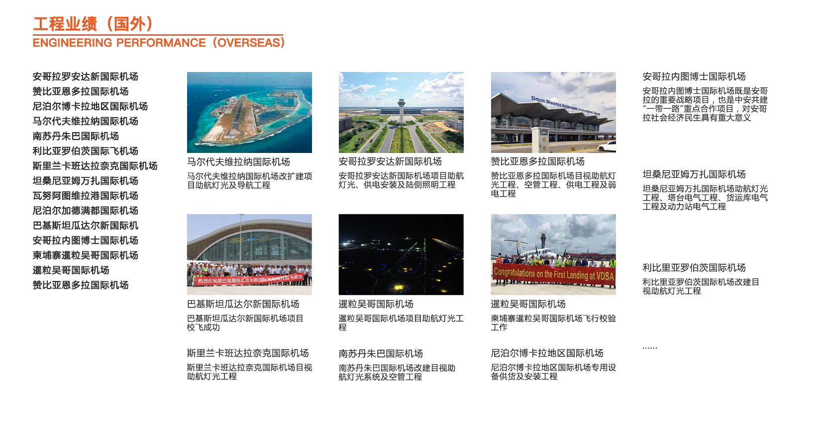 上海浦東國際機場第一至第五跑道助航燈光工程,機場站坪照明工程及圍界安防工程,累計合同額7.28億元人民幣。